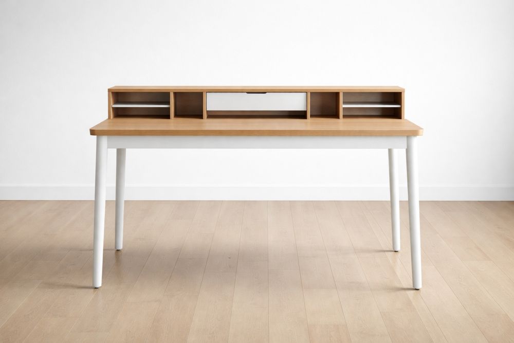 Solid Wood Office Desk with Storage Compartments and White aluminum Legs