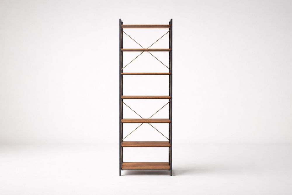 Steel and Solid Wood 7-Tier Bookshelf Black/Brown