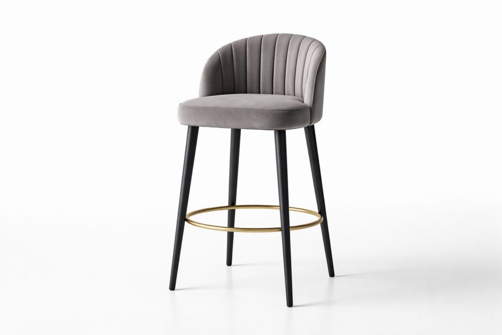 Velvet Upholstered Bar Stool with Steel Frame and Footrest Grey