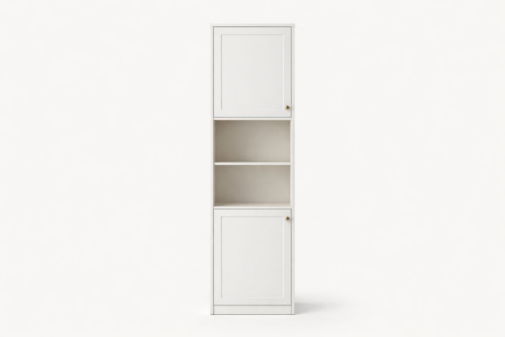 White Tall MDF Storage Cabinet with Doors and Shelves